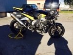 Nu när man kört hojen i några år så byts orginalavgassystemet ut mot ett Watzaprovic helsystem. En kombination av Honda och Kawa Akrapovic helsystem ihopsytt av Professor Watz med Watz(tm) extra fix så ljudet inte ska va några problem på tävlingarna.