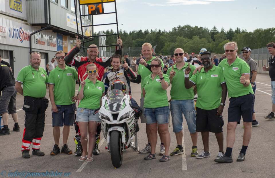 Hursomhelst, stinten gick ganska bra, det bar lite tight emellanåt och lite trångt på banan, men på totalen helt OK. Efter en “kod 50” så hade jag skapliga bakhjulssläpp och tänkte att nåt har hänt och började signalera till personalen vid muren att jag behöver komma in, men efter lite mer sladdande i snabbhögern kom jag på att både Martin & Stefan sagt att det kan ta några varv efter “kod 50” att få upp tempen och greppet igen. Depåpersonalen blev lite “lurade” och jag fick försöka teckna till muren att allt är OK trots allt, lite lätt förvirring kan man väl säga 🙂