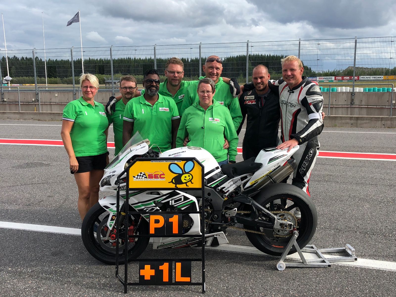 Teamet som den här gången bestod av personalen: Bettan, Roger, Daniel, Ulf, Marie, Stefan och förarna, Stefan, Björn & Håkan. Som sen senare blev Björn och Håkan som fick dela på 6 timmar endurance. Ett bra beslut av Stefan att inte köra, gallsten gör riktigt ont så man kanske inte ska ratta en fullblodad Endurancecykel som går väldigt fort tillsammans med 40 andra på banan.