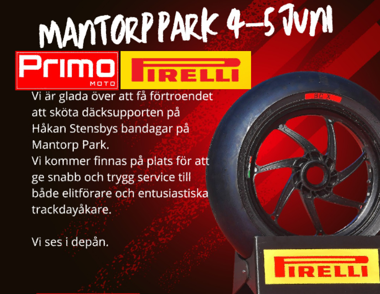 Primo Moto och Pirelli kommer på plats, de säljer däck och håller i däckservice.